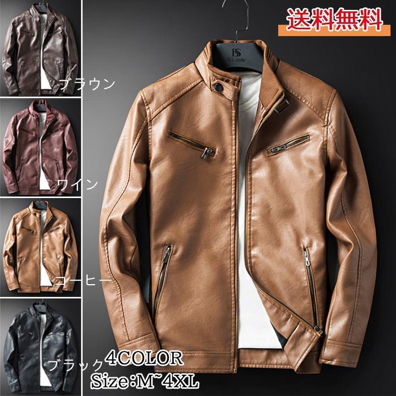 【人気商品】秋新作 ライダースジャケット メンズ ジャケット 革ジャン レザージャケット 合成皮革 PU 防風 撥水 通勤 通学 ブルゾン