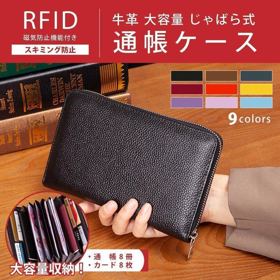 通帳ケース レディース 革 母子手帳ケース 大容量 磁気防止 スキミング防止RIFD じゃばら 牛革 印鑑ケース 札入れ 財布