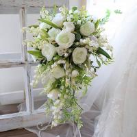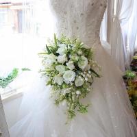 ホワイトローズとスズランを中心に清楚な雰囲気でまとめたセミキャスケードブーケです。