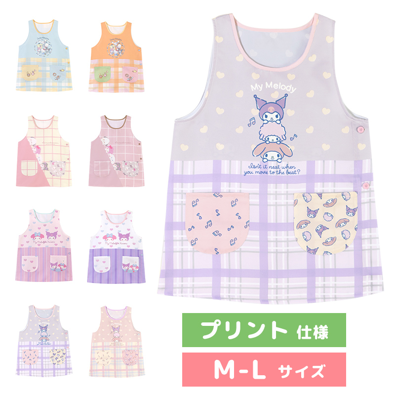 【メール便送料無料】 エプロン 保育士 キャラクター プリント サンリオ キティ マイメロディ クロミ シナモロール ポムポムプリン ポチャッコ ピアノ M-L