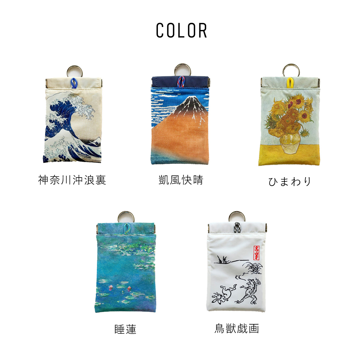 携帯ゴミ箱 / マルチケース / 小物入れ / ミニポーチ / カラビナ付き / ミニ ゴミ入れ / 葛飾北斎 / ゴッホ / モネ / HEMING'S / ヘミングス
