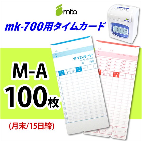 mita 電子タイムレコーダーmk-700/mk-100用タイムカード M-A (月末/15日締) 100枚
