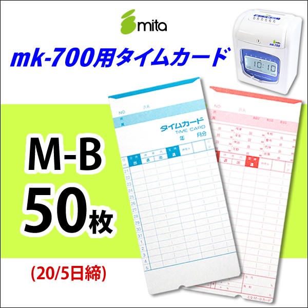 mita 電子タイムレコーダーmk-700/mk-100用タイムカード M-B (20/5日締) 50枚