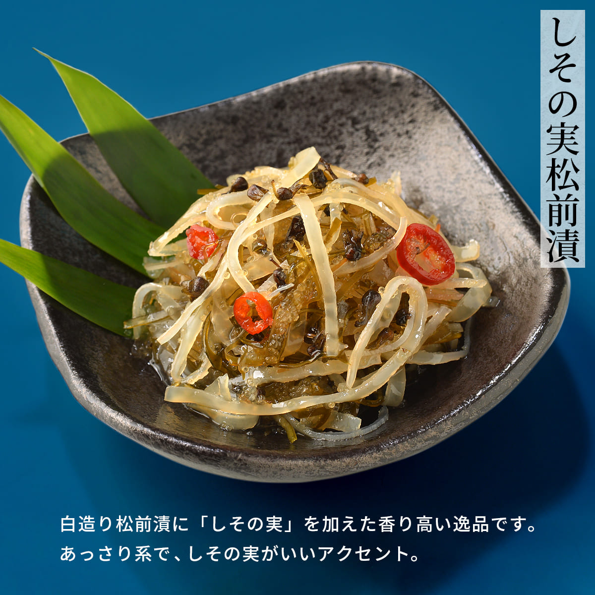 | 原材料名 | 数の子(輸入)、いか、オリゴ糖、白醤油加工品(たんぱく加水分解物、白醤油、水飴)、発酵調味料、砂糖、昆布、しその実、たんぱく加水分解物、食塩、風味調味料(かつお)、唐辛子/調味料(アミノ酸等)、香料、増粘剤(キサンタンガム)、pH調整剤、(一部に小麦・大豆・いか・さばを含む) |