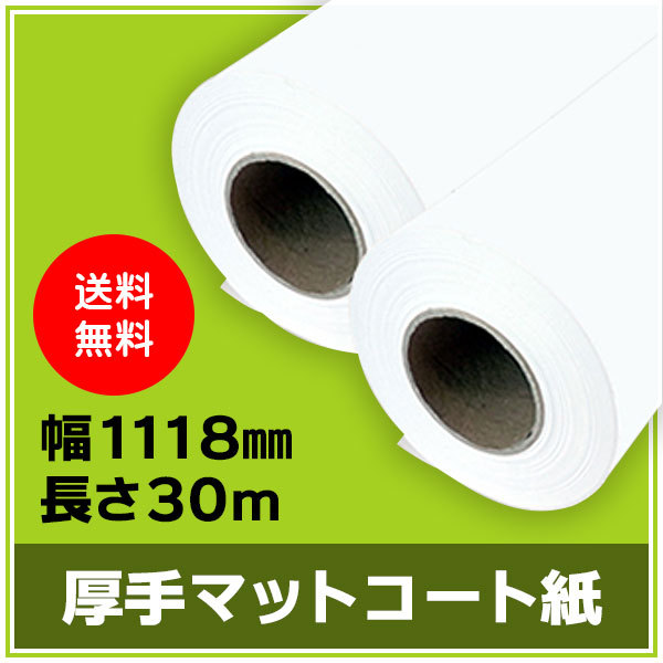 インクジェットロール紙 厚手マットコート紙 幅1118mm(B0ノビ)×長さ30m 厚0.185mm 2本入