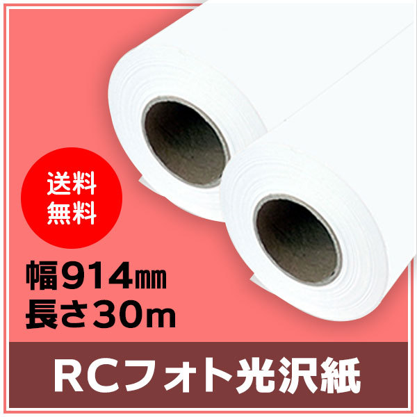 インクジェットロール紙 RCフォト光沢紙 幅914mm(A0ノビ)×長さ30m 厚0.19mm 2本入