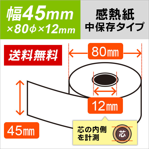 感熱ロール紙 45mm×80mm×12mm 中保存タイプ 10巻