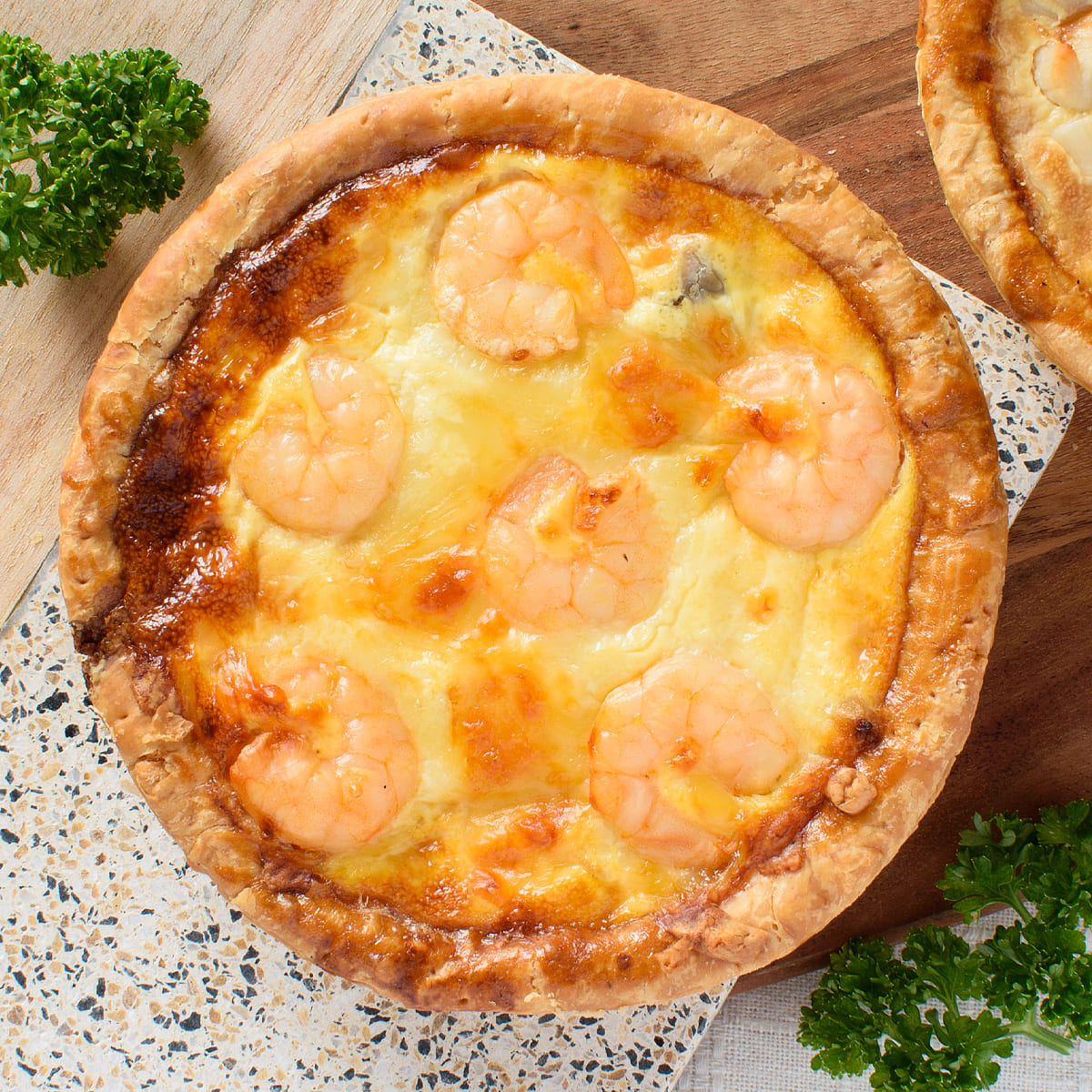 | 自慢の手作り生地×アパレイユ 当店のキッシュは生地もアパレイユも全て手作り。フランスのレシピに基づいた素朴な家庭の味です。 たっぷりのバターを練りこんだ生地は、ひと口食べると小麦とバターの香ばしさが口いっぱいに広がります。サクッとした心地よい食感で、フィリングを受け止める土台でありながら、存在感があります。 「生地が美味しい!」とお声も多くいただく、当店自慢のタルト生地です。 アパレイユは、卵・生クリーム・チーズを贅沢にたっぷり使用。コクが深く、ふわりと優しく具材を包み込みます。 メイン具材は、人気の組み合わせのエビ×アボカド。そのままはもちろん、レモンを絞って爽やかさをプラスするのもおすすめです。 | ||