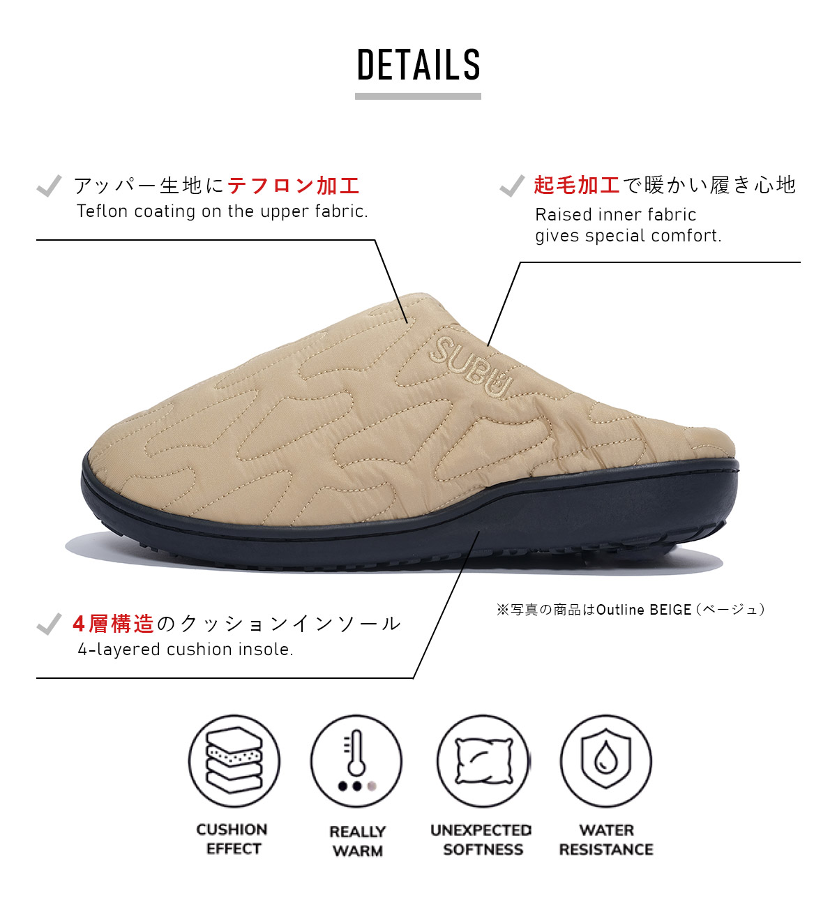 キーワード:サンダル / スリッパ / 外履き / つっかけ / 部屋履き / あったか / ボア / 起毛素材 / ステッチ / キルティング