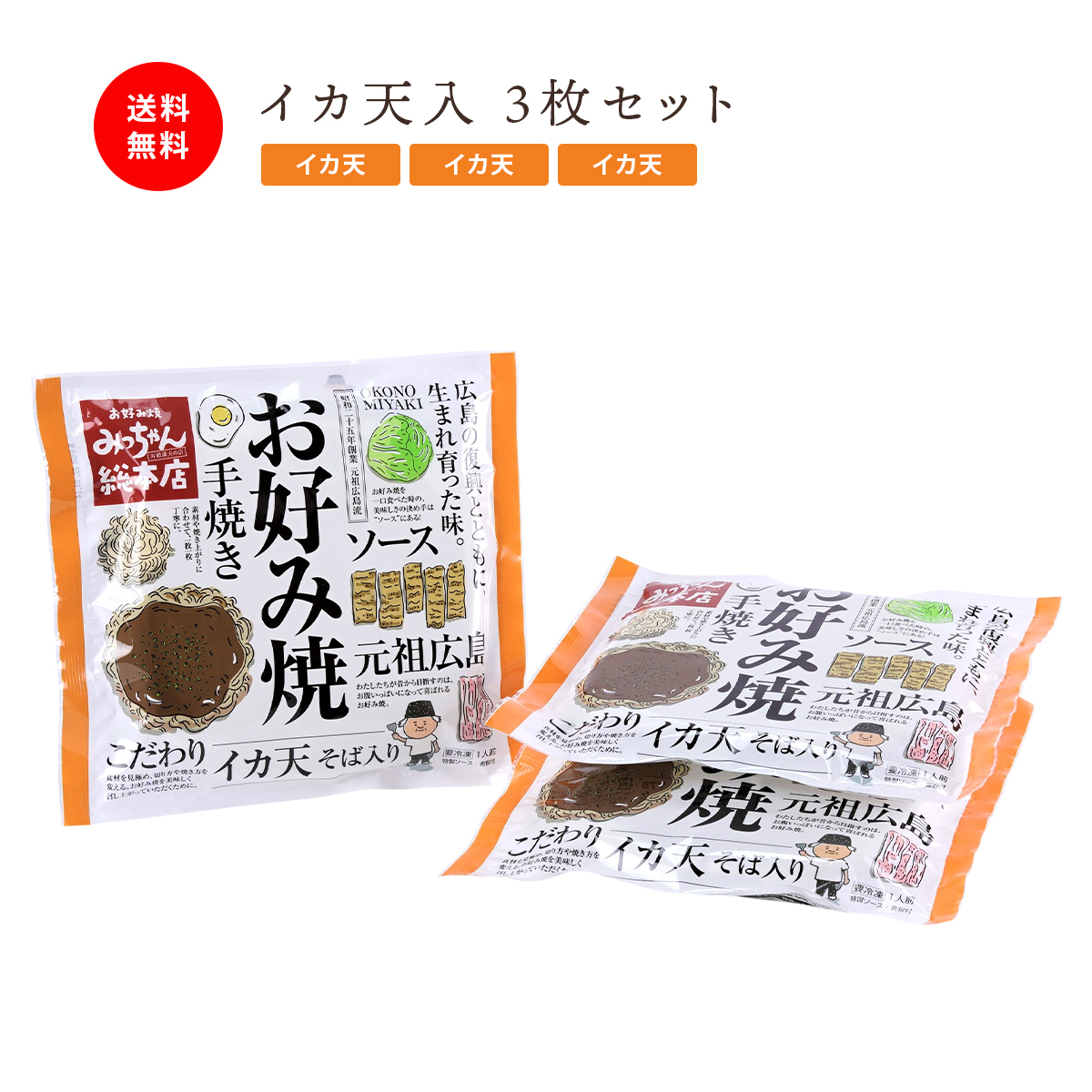 広島流お好み焼 イカ天入 3枚セット