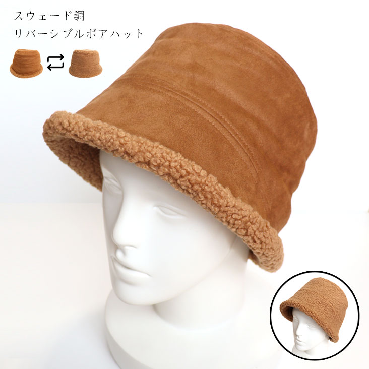 スウェード調リバーシブルボアハット かわいい もこもこ 暖かい 防寒 おしゃれ 上品 大人 レディース 女性 バケットハット 柔らかい おすすめ 秋冬 帽子 紅葉