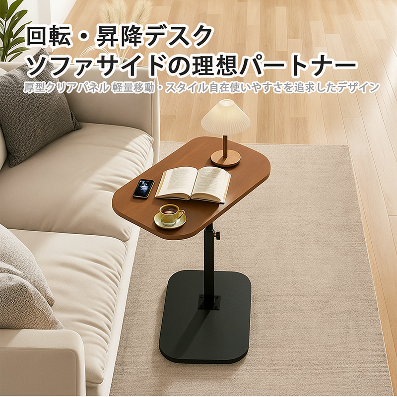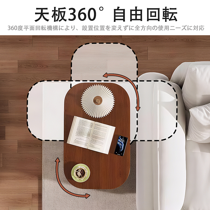 【UP!回転+昇降+横移動】サイドテーブル 昇降式 360度回転 ナイトテーブル 可動式 ベッドサイドテーブル 耐水 ソファーテーブル コーヒーテーブル おしゃれ