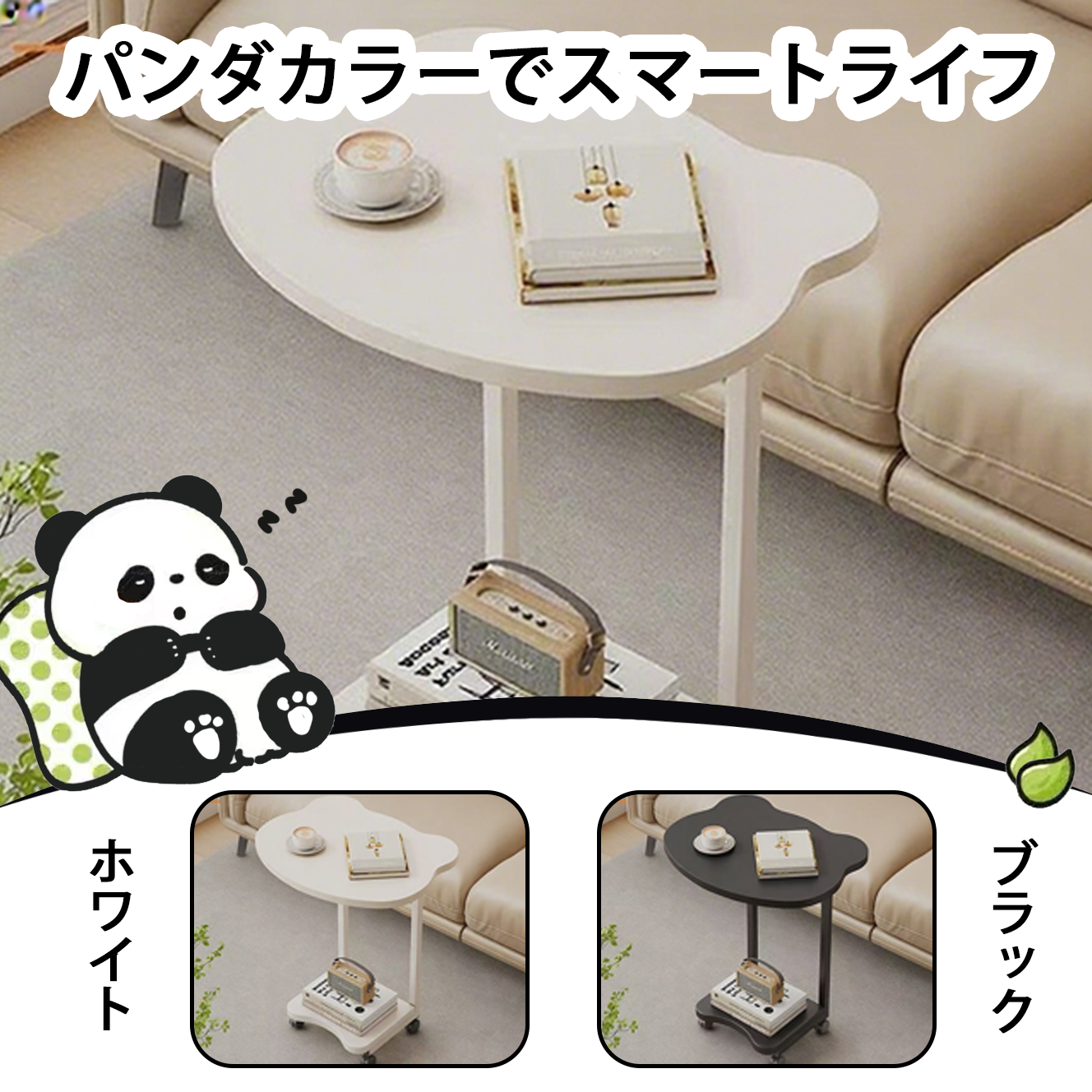 ★パンダの頭型★サイドテーブル キャスター付き コの字型 ナイトテーブル テーブル 軽量 ベッドテーブル ソファサイドテーブル 寝室 省スペース 在宅勤務 寝室