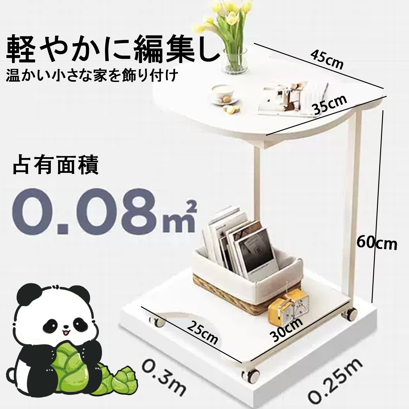 可愛いパンダサイドテーブル 小さくて精巧なパンダの形状は、あなたの生活空間を飾り立てます。花瓶、パソコン、マグカップ、雑誌などを同時に置くことができる。サイズ: 長さ35cm×幅45cm×高さ60cm。