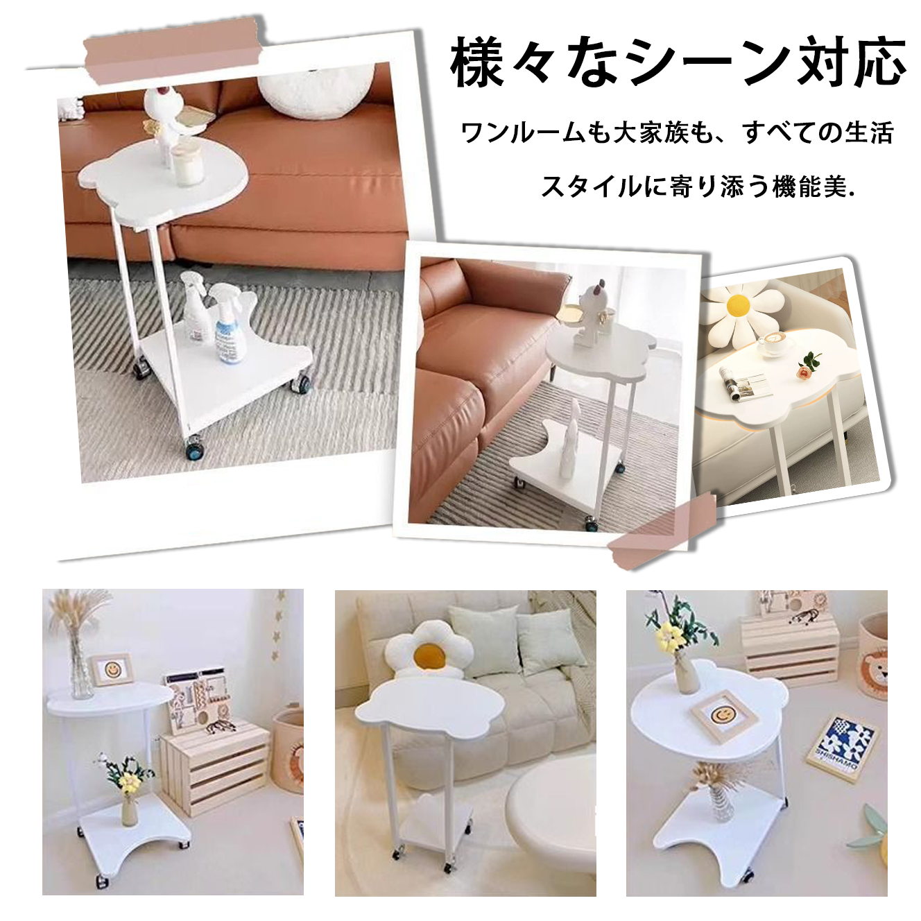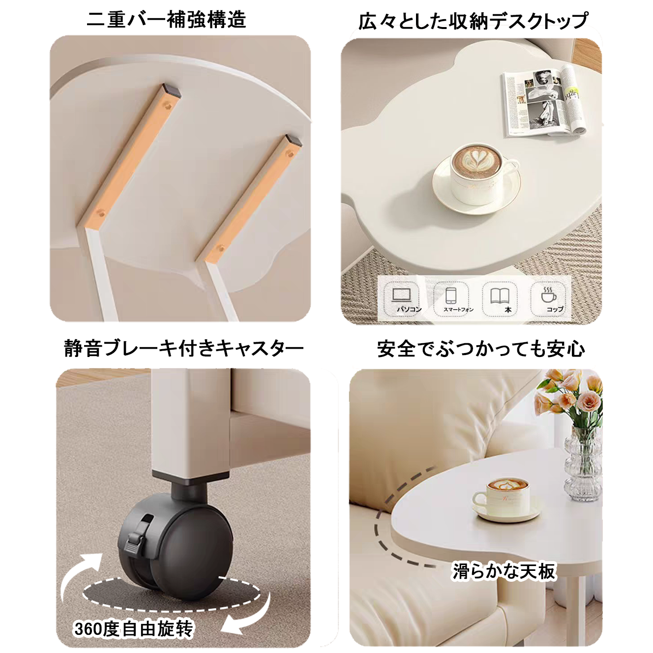 サイドテーブルを移動させたい場合には、非常に便利な4つのキャスターが付属しています。携帯移動設計 361°回転キャスター、自由に移動ができます。