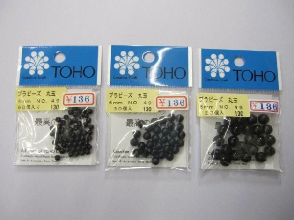 プラビーズ丸玉黒 4ミリ-60個入り,6ミリ-30個入り,8ミリ-23個入り