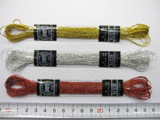 金ラメ・銀ラメ・赤ラメの刺繍糸 8m巻
