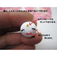 頭は、スチボールをちりめん生地で包んで作り、糸で目や口を作ります。