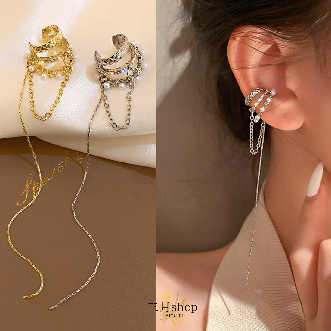 イヤーカフ 3連 パール 星 ゴールド シルバー レディース 十字架 サークル 片耳用 上品 カジュアル エレガント おしゃれ ec10 1100円以上送料無料