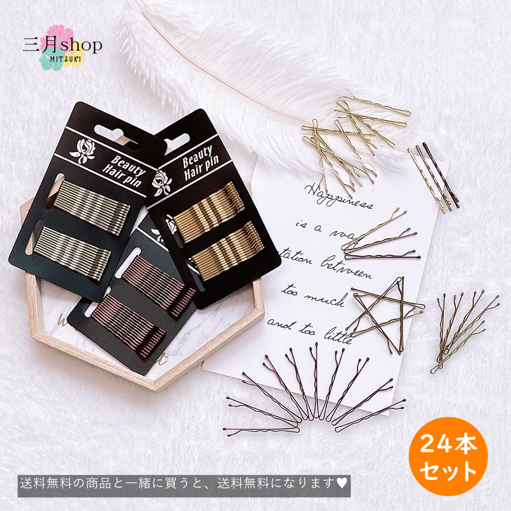 24本セット ウェーブヘアクリップ ヘアピン 波状 ヘアアクセサリー メンズ 子供 キッズ ピン止め 大人 前髪 アメピン ゴールド hp2103 1100円以上送料無料