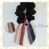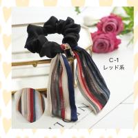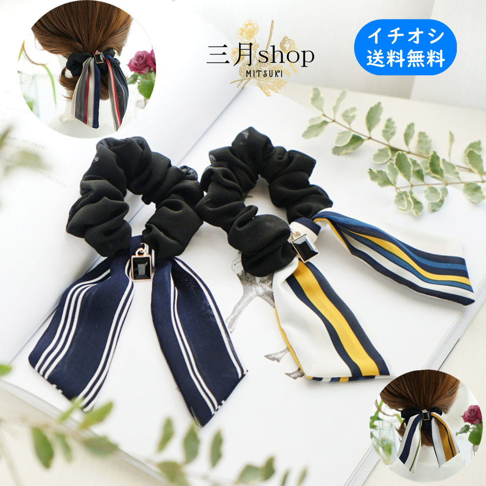 シュシュ ヘアアクセサリー リボン ストライプ 大きい カジュアル チャーム付き ブレスレット 取り外し可 おしゃれ ss2113