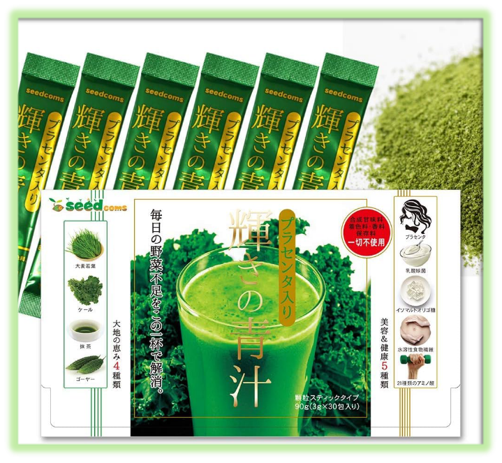 シードコムス 輝きの青汁 プラセンタ入り 青汁 大麦若葉 ケール 抹茶 乳酸菌 オリゴ糖 配合 スティックタイプ 30包