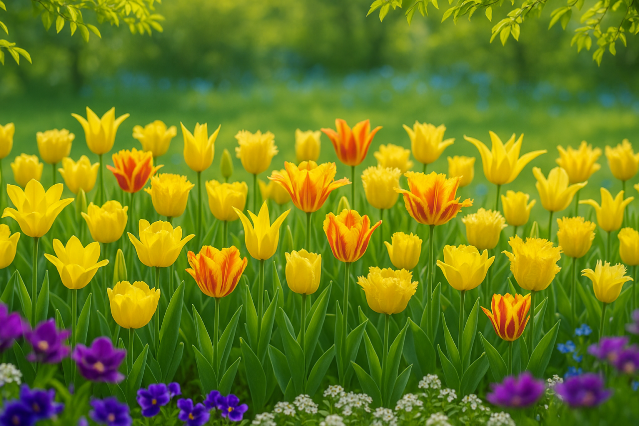 チューリップ 球根 黄色系 咲き方ミックス 大球 100球セット|一重咲き 2色咲き ユリ咲き 八重咲き フリンジ咲き パーロット咲き