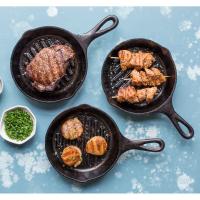 底が波形になっているので、きれいな焼き目を付けられます。肉や魚の余分な油を落とし、料理をヘルシーに仕上げられます。スキレットでも人気サイズの6 1/2サイズは、日本限定モデルです。
