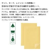▼テント、タープ、レインコートの修理に!生地のかぎ裂きや穴あきを補修する透明シート。