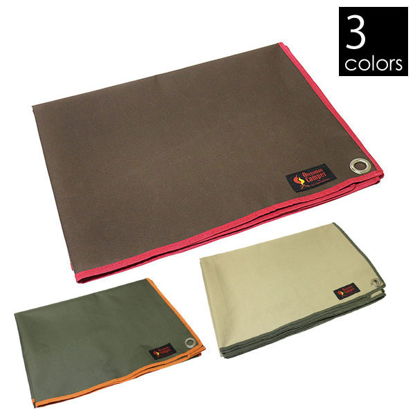 裏面が防水コーティングされたシンプルデザインのグランドシート。アイレットがついてるのでペグでの固定もできます。