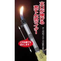・火口が伸びる充てん式ライター。充てんする燃料は経済的なカセットガス。(ライター用ガスでも使用可能)