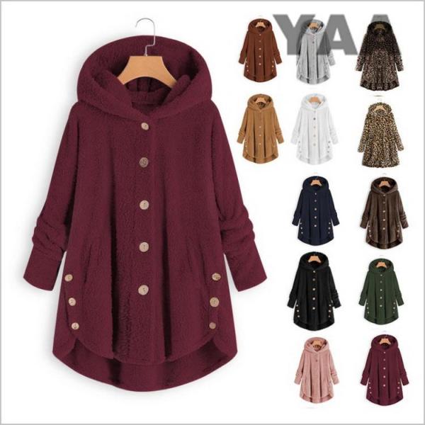 レディース フリースジャケット ジャケット ロングコート ボアコート もこもこ 暖かい フード付き 厚手 防寒 春 秋