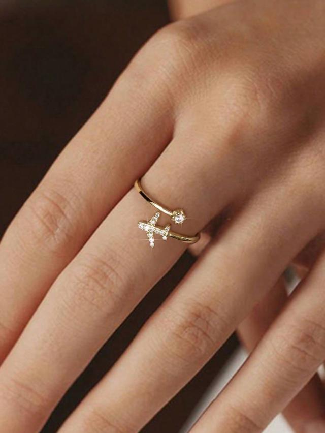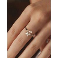 1個 925スターリングシルバー ジルコニア 飛行機 調整可能リング レディースファインジュエリーギフト