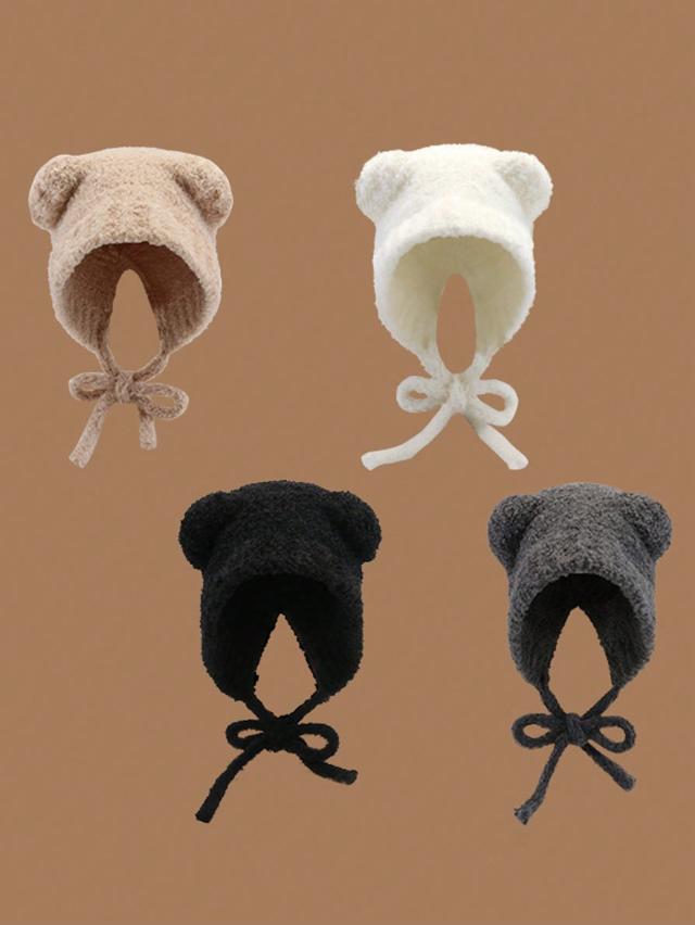 1個 無地 ぬいぐるみ レース付き 猫耳ハット ブリムレス ニット帽 温かい冬 デイリー買い物 旅行