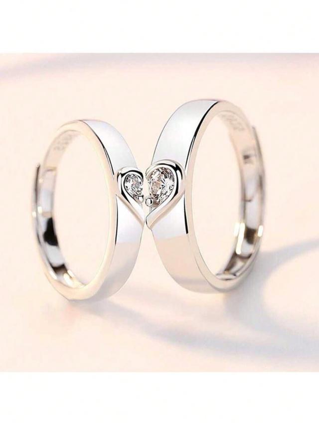 2個セット ハート型カップルリング、ロマンチックなギフト 休日、デート、ビーチ、女性、彼女、妻、友人に最適、クリスマス、バレンタインデー、母の日、新年に適しています