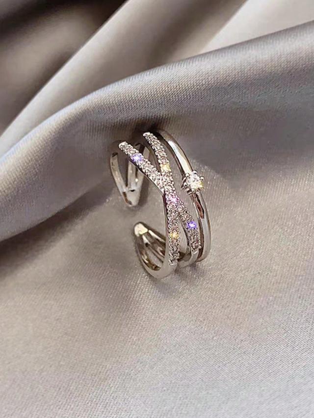 1個 トレンディーな高級ミニマル クロス デザイン ジルコニア インレイ リング、多用途でファッショナブル