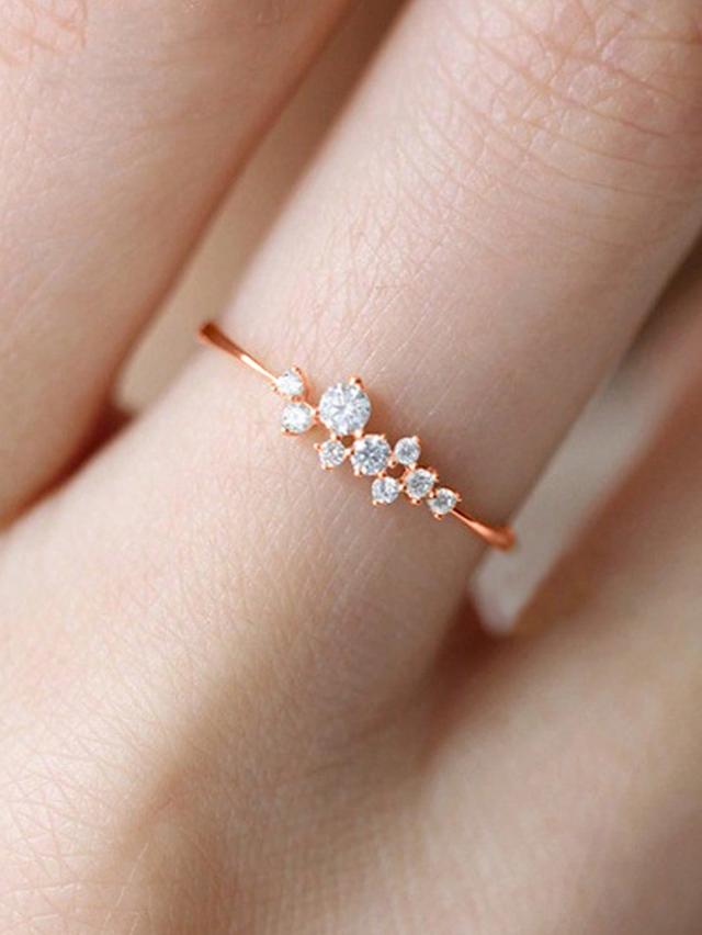 1個 S925スターリングシルバー 不規則 輝くジルコニア ウルトラファイン リング、女性の日常通勤に使いやすい