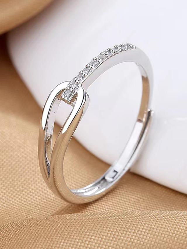1個おしゃれな韓国スタイルのシンプルな幾何学的空洞リング、宝石付き。女の子たちのデイリーウェアに適したエレガントで繊細なデザイン