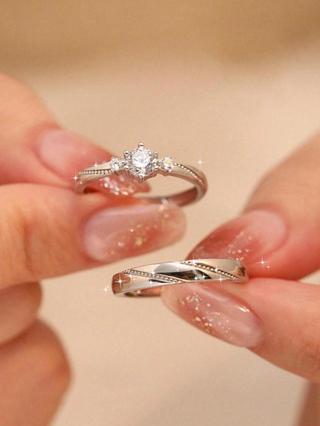 ジルコニア製 カップルリング 2個セット、婚約/結婚指輪、バレンタインデーギフト「愛しています」、母親、母の日ギフト