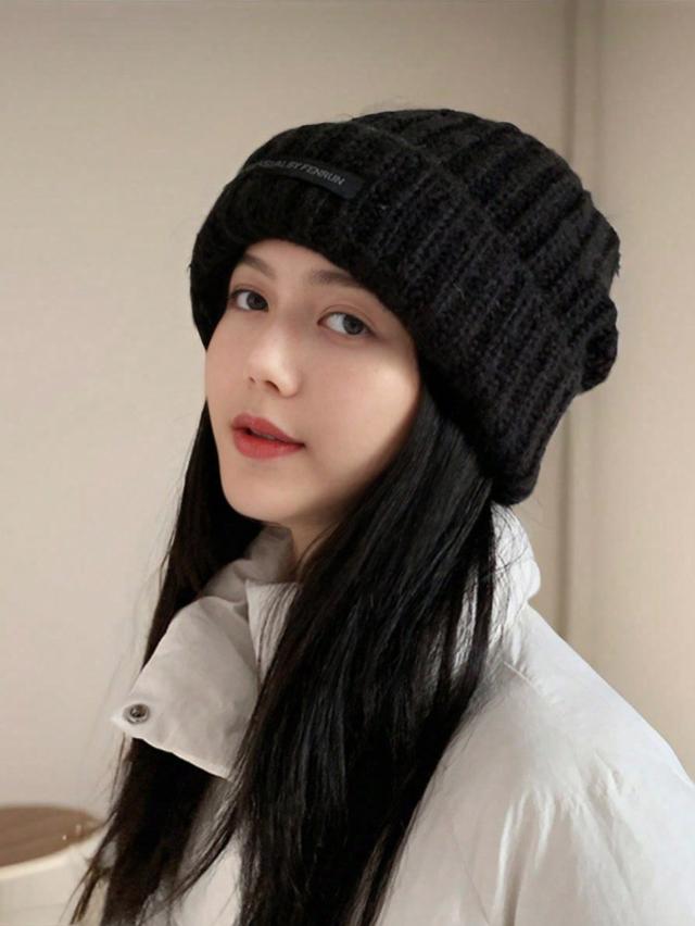 秋冬新作 ニット帽子、厚手 暖かいニットキャップ、韓国風 多用途 カジュアル 防風 耳あて付き 防寒帽子、ファッション パーソナライズ カジュアル ポリエステル レター刺繍ビーニー