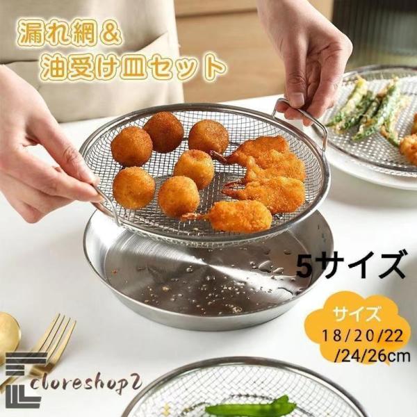 蒸しかご揚げ物かご多機能食油受け皿セット家事問屋ステンレス蒸し皿ざる網洗器対応耐蒸し台卓上水切り油切りキッチン用品調理器具
