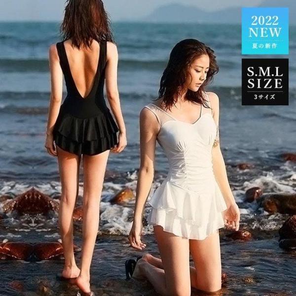 水着 ワンピース レディース かわいい フリル 体型カバー ショートパンツ 一体型 黒 白 無地 ママ 韓国 美背 おしゃれ夏休み 海水浴 プール