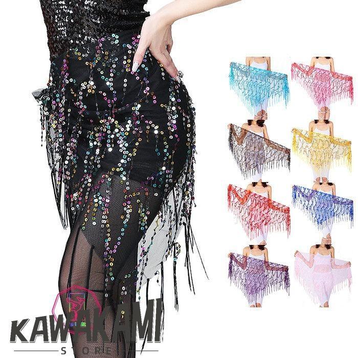 ベリーダンス衣装 フリンジヒップスカーフ 全11色 ヒップスカーフ 初心者向け レッスン着 メッシュ スパンコール タッセル ボヘミアン風 腰巻き 練習着 ショール