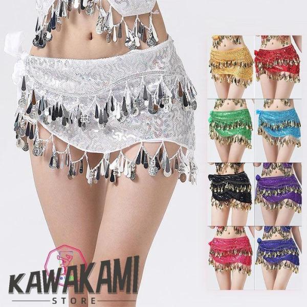 ベリーダンス衣装 ヒップスカーフ 全9色 スパンコール コイン タッセル ベリーダンス レッスン着 初心者向け フリンジ ダンス ステージ衣装 文化祭 パーティー