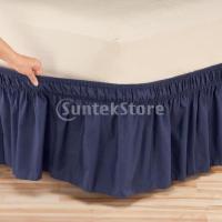 クラシックラッフルマイクロファイバーベッドスカート.15インチドロップダークブルー - フル