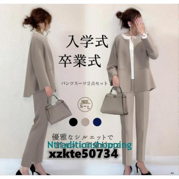 セットアップ 春 スーツ+パンツ レディース 2点セットフォーマル 薄 カジュアル オフィス ビジネス 通勤 OL 卒業式 入学式 30代40代