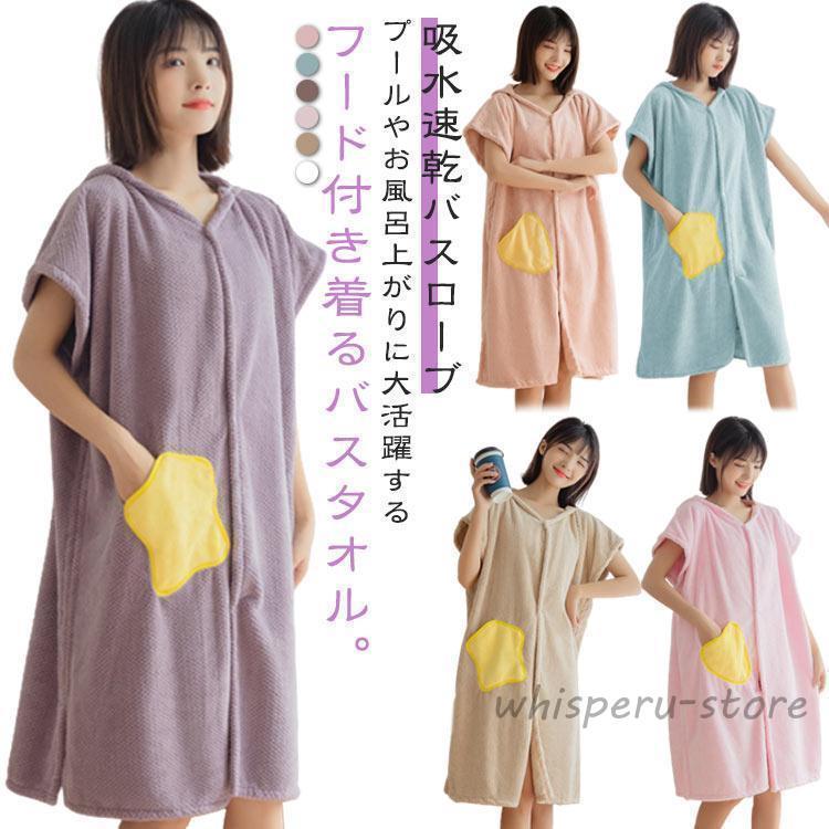 着るバスタオル 半袖 バスローブ フード付き ロング 大きいサイズ バスタオル 着る タオル レディース ラップタオル パジャマ タオルケット 大判