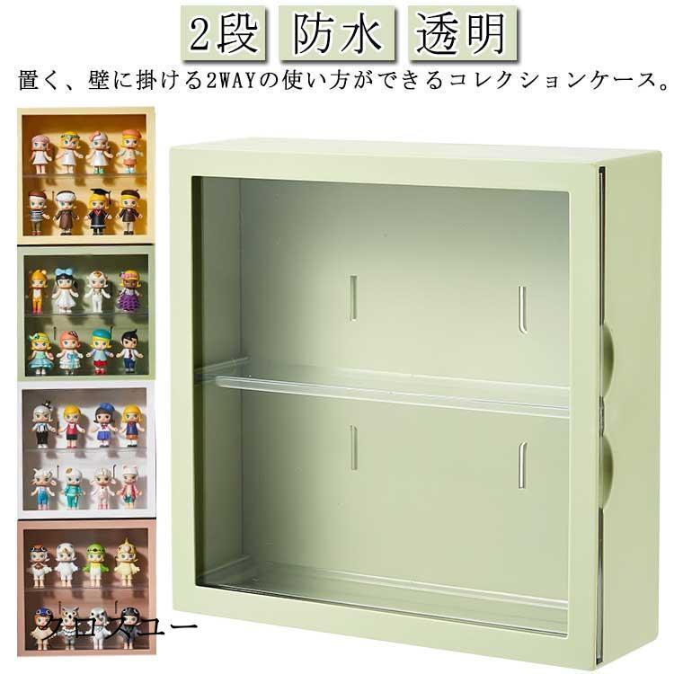 壁掛け コレクションケース 2段 フィギュアケース 収納 おしゃれ 透明 クリアケース 壁面収納 展示台 卓上 小型 収納棚 小物収納 おしゃれ 粘着