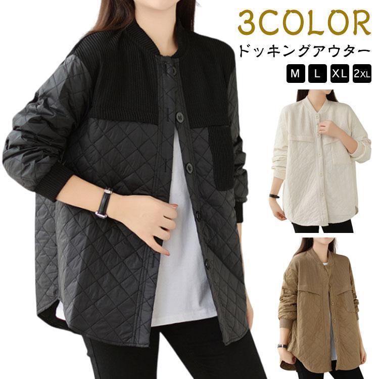 コート キルティングジャケット アウター ドッキング 切り替え 長袖 キルティング ニット ドッキングアウター 異素材 ドッキングアウター 軽量 レデ