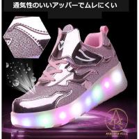 ローラーシューズ 2輪 子供用 ローラースケート LED光る かかとボタン 靴 ローラーススニーカー ヒーリーズ